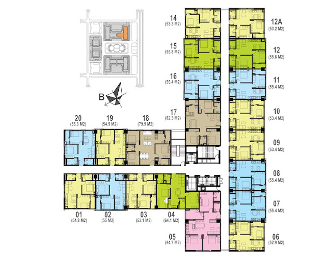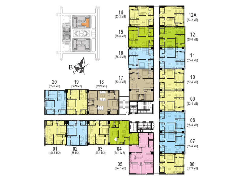 Các diện tích : 53m2, 54m2, 64m2, 82m2, 94 m2…